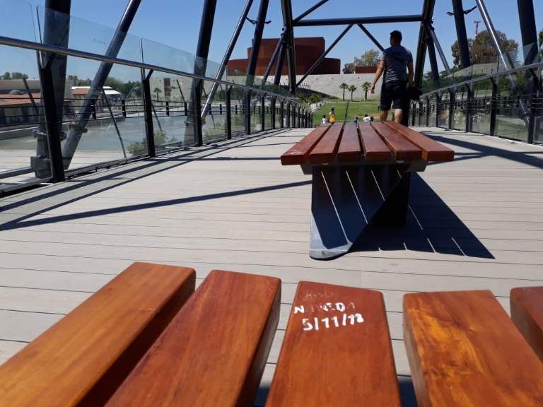 El pasado 7 de noviembre fue inaugurado el Puente Cívico, un nuevo ícono del paisaje capitalino que une la majestuosa Plaza del Bicentenario con el Centro Cívico. A poco más de una semana ya aparecieron pintadas en la zona de los bancos.