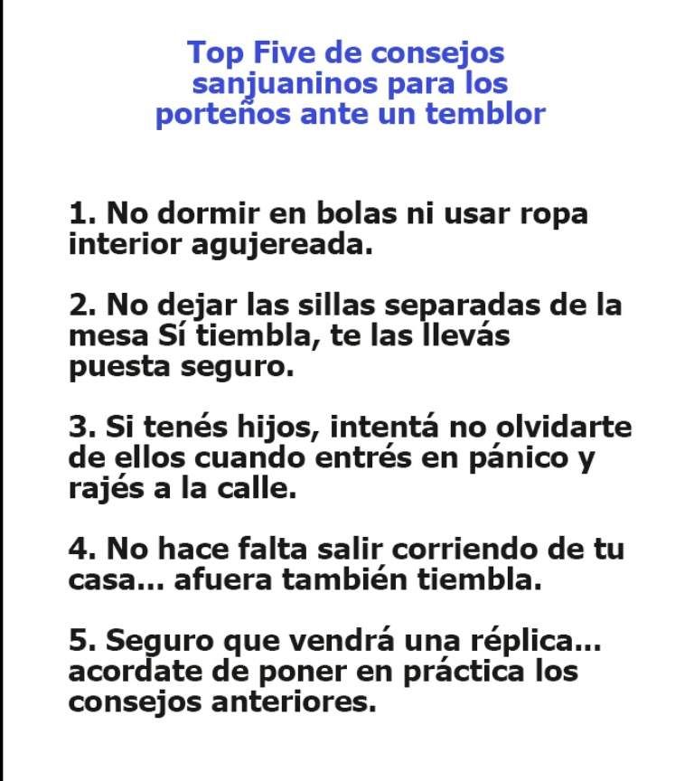 SUSCRIBITELos memes 'made in San Juan' no tardaron tras conocer el fuerte impacto que tuvo en Buenos Aires un temblor de 3,8 grados, movimientos bastante habituales por esta provincia cuyana.