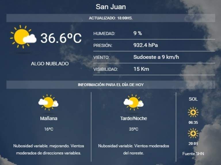 La agobiante y alta temperatura en la provincia no da tregua este domingo que, por la tarde, presenta su máxima graduación aún mayor de lo que había previsto el Servicio Meteorológico Nacional que había anunciado una mínima de 16° y una máxima de 35°.