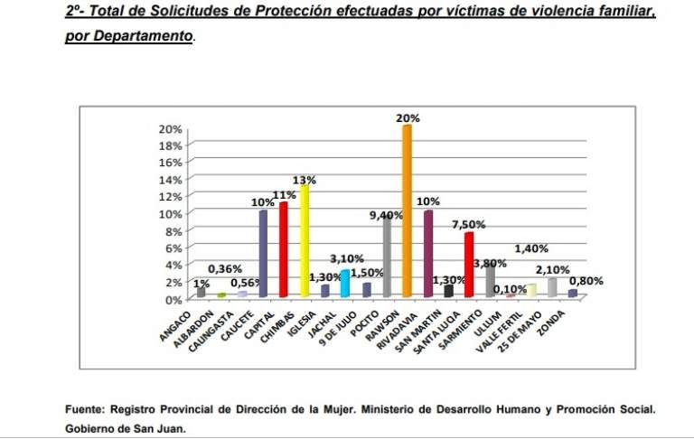 -En los Departamentos de Rawson, Chimbas, Capital, Rivadavia, Caucete, Pocito y Santa Lucía, se concentra el 81 % del total de denuncias en la Provincia de San Juan.
