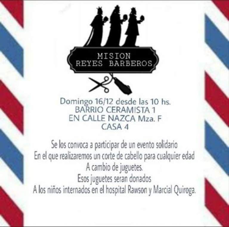 Las fiestas son una buena excusa para dejar salir lo mejor de nosotros y ayudar a alguien que lo necesite. Este domingo en el Barrio Ceramistas podrás dar una mano a un grupo de peluqueros solidarios, que cortarán el pelo a cambio de un regalo para chicos de los hospitales Rawson y Marcial Quiroga.