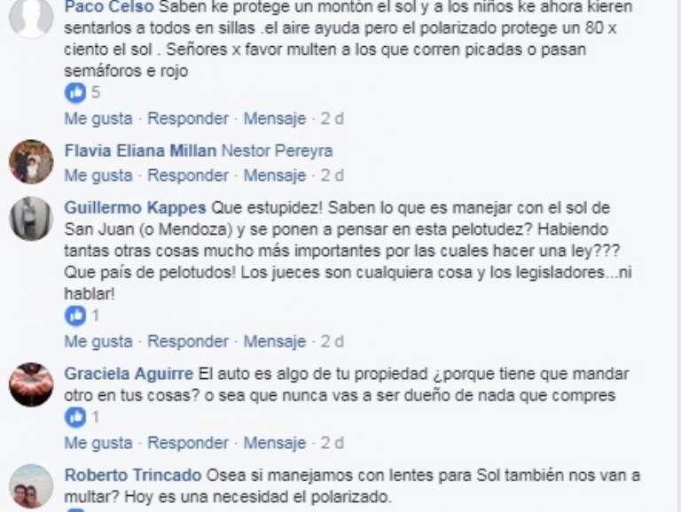 Los sanjuaninos dieron a conocer su opinión sobre el uso de polarizados en los autos. La mayor parte de los lectores de Tiempo de San Juan debatió en el Facebook de este diario, la mayor parte dijo estar a favor del uso de los polarizados. Por seguridad, por el calor. Éstas son algunas de las razones por las cuales los sanjuaninos optan por los polarizados.