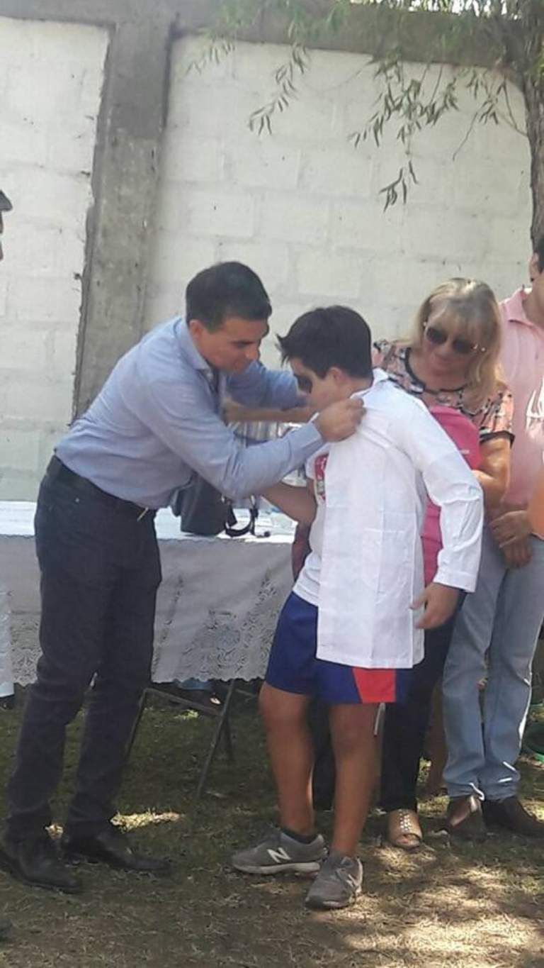 Francisco es un pibito que emocionó y dio qué hablar ayer en Chimbas. El caso lo contó en las redes el periodista Rolando Chiffel: "La idea de dar y la solidaridad, nos las enseño está mañana Francisco, un pibe que va a la colonia de vacaciones de Chimbas. Le habían dado su kit escolar y apenas tomó el guardapolvo que se midió delante del intendente Fabian Gramajo, el niño le susurro al oído algo. El intendente me busca con su mirada, y me dice que el niño quiere decir algo por micrófono. Lo llamó, dice su nombre 'Francisco', y dispara esto: 'intendente como yo voy a un colegio privado (El Prado de Chimbas), y tengo guardapolvo, voy a donar el mio al niño que lo necesite', dice eso, se abraza con Fabián y comparte con el, la alegría que se siente cuando DAR ES DAR. Aprendamos de los niños, ellos tienen tanto para enseñar".