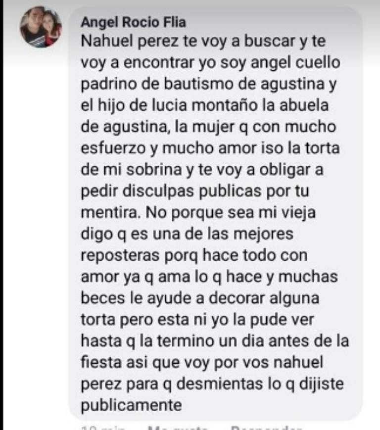 Pero lo cierto es que luego de que se hiciera famosa la torta, se generó una novela alrededor de ella. Por un lado, los familiares de Agustina que aseguran que la abuela de la niña fue quien hizo la obra pastelera y por el otro, Nahuel Pérez, quien respondió que él la hizo completamente y que incluso hacerla lo llevó a tener tremendos dolores de espalda.
