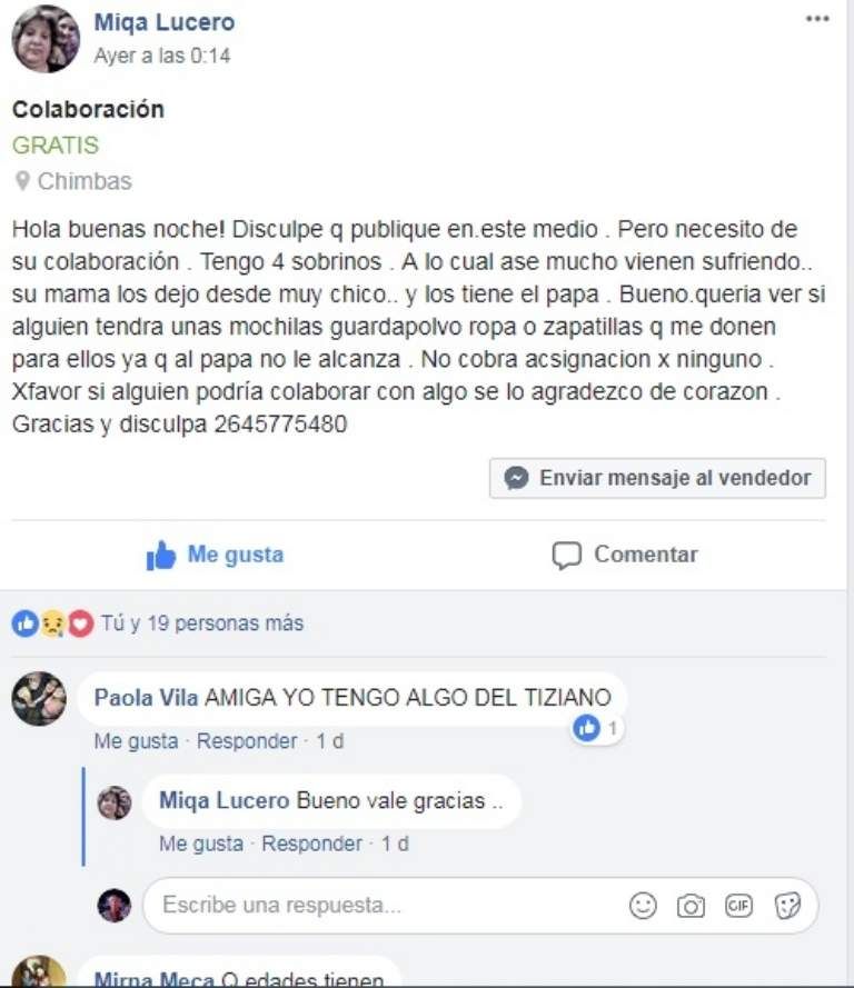 Una mujer recurrió a las redes sociales para solicitar colaboración para sus sobrinos, cuyos padres se encuentran atravesando una situación económica complicada.