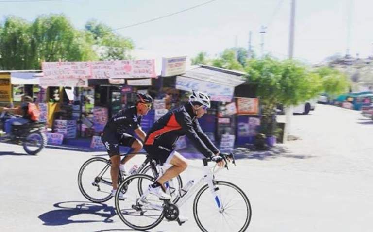 El gobernador Sergio Uñac; el secretario de Deportes, Jorge Chica y el ciclista y funcionario zondino Oscar Villalobos este fin de semana pasado decidieron cumplir con una promesa que le habían realizado a la Difunta Correa.