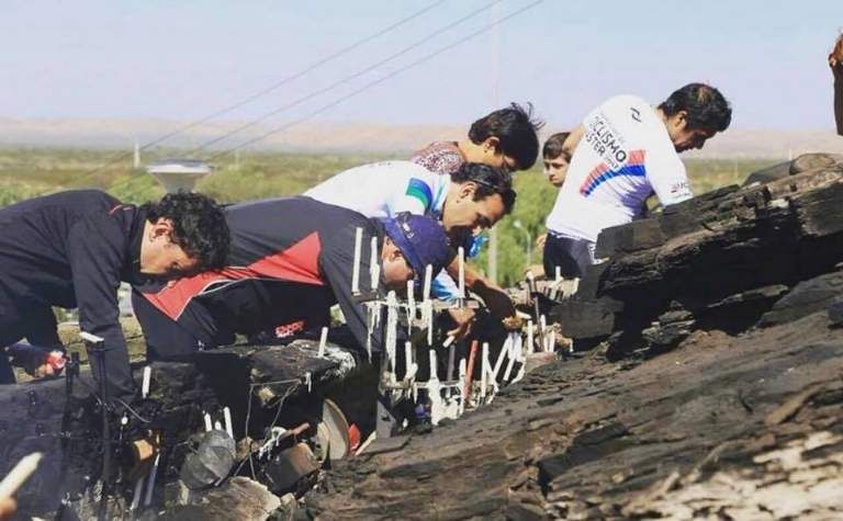 Los tres fueron en bicicleta a la Difunta. Cuando llegaron al paraje, como todo fiel a la santa popular prendieron velas en el altar de la Difuntita. Mirá las fotos de la hazaña.