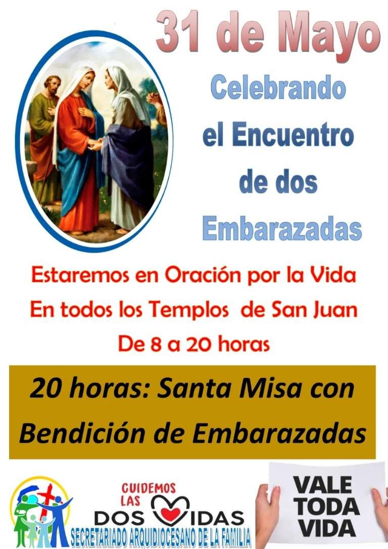 En el día en el que la Iglesia católica celebra la Visita de María (embarazada) a su prima, Santa Isabel (con 6 meses de embarazo de San Juan Bautista), se realizará en toda la Provincia la Jornada de Oración por la Vida este 31 de mayo.