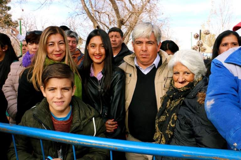 Paradita atrás de la valla, se puso unas medias gruesas y unos zapatos abrigados y cómodos, y disfrutó de los papelitos, de la banda de música y ubicada justo enfrente del palco oficial, no se perdió detalle del “Sí, juro” de su nieto Ricardo Pacheco, que cumple funciones en Seguridad Ciudadana de la Policía de San Juan. La orgullosa abuelita llegó desde 25 de Mayo junto a su hija y mamá de Ricardo, Gabriela; el papá de Ricardo, el hermano y la novia, todos felices de ser parte del festejo que juntó a decenas de ulluneros y visitantes en la villa cabecera.