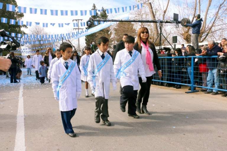 Vestido con un impecable guardapolvo y una banda celeste y blanco, Rodri luego desfiló como un caballero junto a los 4 compañeritos, José Zarate, Roman Bravo, Luciana Irrazabal y Celeste Vega. Irma Cataldo, docente de la escuela, contó que se prepararon mucho para la ocasión. Y demostraron ser de los más aplaudidos en el desfile.