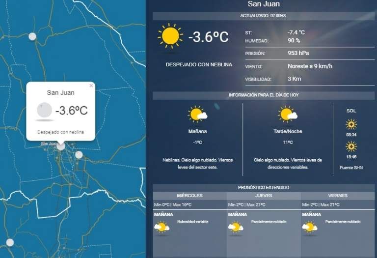 Poco antes de que saliera el sol, la Sensación Térmica marcó un piso de -7.4º. Además, la neblina y la helada hicieron que conducir por las calles sanjuaninas fuera un peligro.