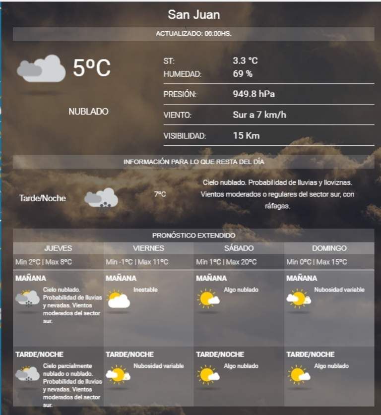 SUSCRIBITEEl Servicio Meteorológico Nacional prevé para la jornada de este jueves una temperatura máxima de 8º y una mínima de 2º.