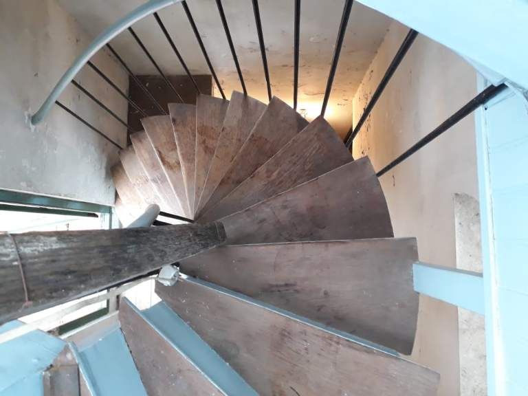 Estos escalones, deformados por el tiempo y el uso, fueron testigos de la infinidad de ascensiones de Sarmiento a su mirador