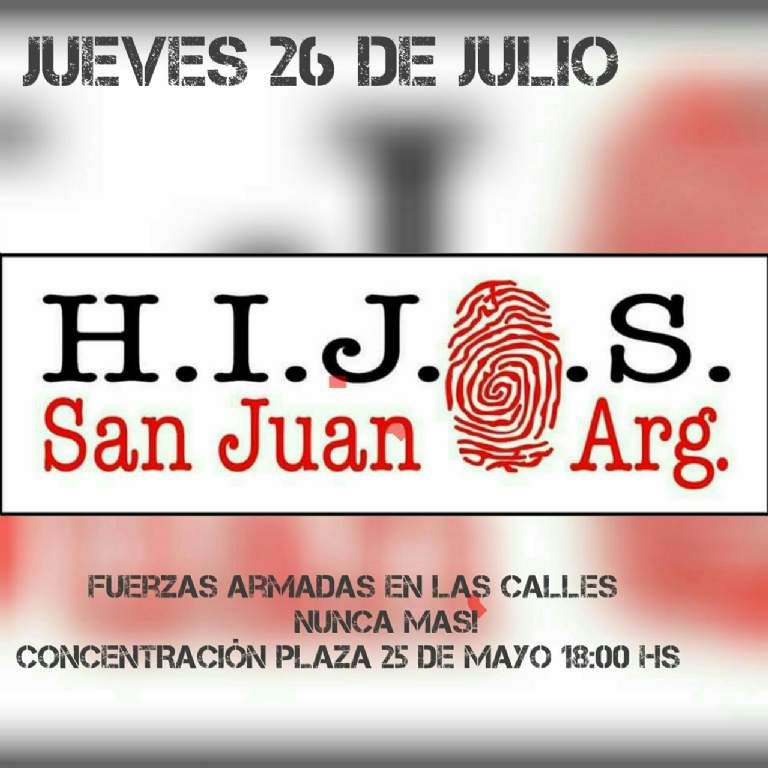 Los referentes de la Coordinadora Provincial de Derechos Humanos, APDH San Juan e HIJOS San Juan adhieren a la marcha nacional de Abuelas de Plaza de Mayo en contra de la decisión presidencial de sacar a las calles al Ejército.