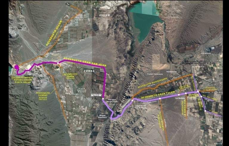 La obra incluye el Nuevo Establecimiento Potabilizador Punta Negra que se construirá al pie de la presa del Dique Punta Negra. Los volúmenes de agua cruda captados serán tratados mediante una potabilización convencional (floculación – decantación – filtración – desinfección), transportados mediante el Acueducto Gran San Juan hacia Zonda y el Gran San Juan y mediante el Acueducto Ullum hasta el Establecimiento Potabilizador Marquesado, departamento Rivadavia.