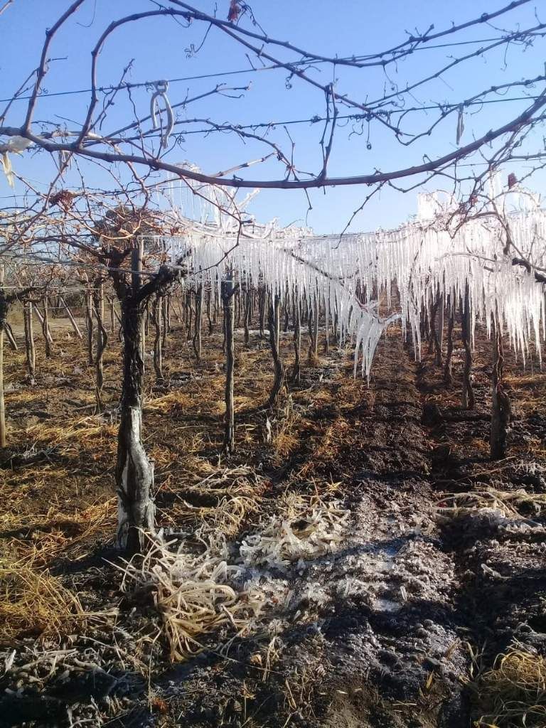 A pesar de que cuando captaron la imagen ya había salido el sol, todavía se podía ver una gran cantidad de hielo que colgaba de los parrales y también en el suelo. La postal es muy similar a la que se pudo ver en Iglesia ese mismo día.