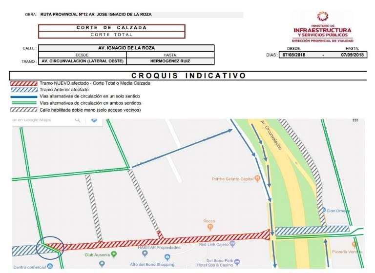 Con motivo de las obras de ensanche de Avenida Central se hará un corte de calzada desde el 7 de agosto, según comunicó Vialidad Provincial.