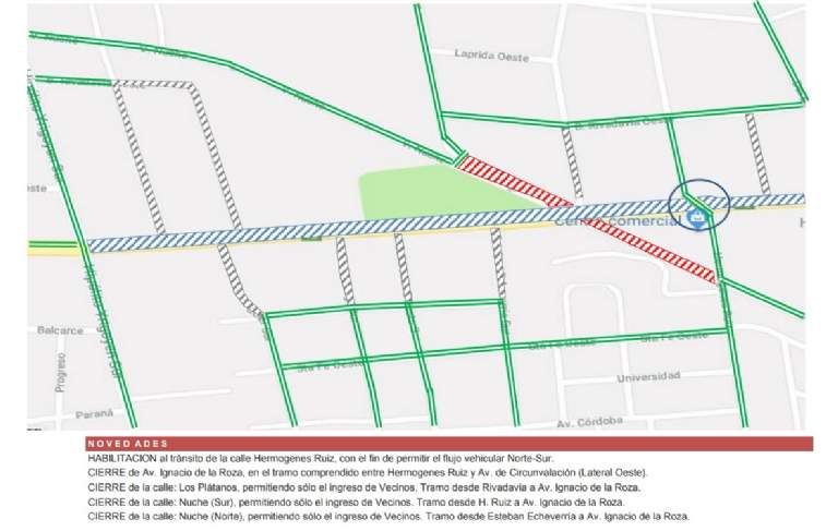 Además, desde la repartición comunicaron la habilitación al tránsito de la Calle Hermógenes Ruiz con el fin de permitir el flujo vehicular en sentido Norte-Sur.