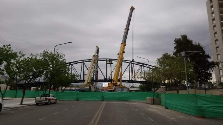 Tras una semana de intenso trabajo ya quedó ensamblado el esqueleto del puente Cívico que disfrutarán los sanjuaninos.