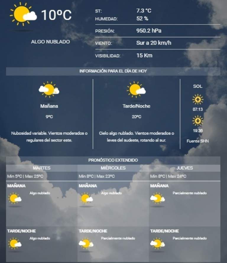 Con vientos moderados a regulares, este fenómeno descendió la temperatura notablemente y la máxima no superará los 20ª, mientras la mínima fue de 6º.