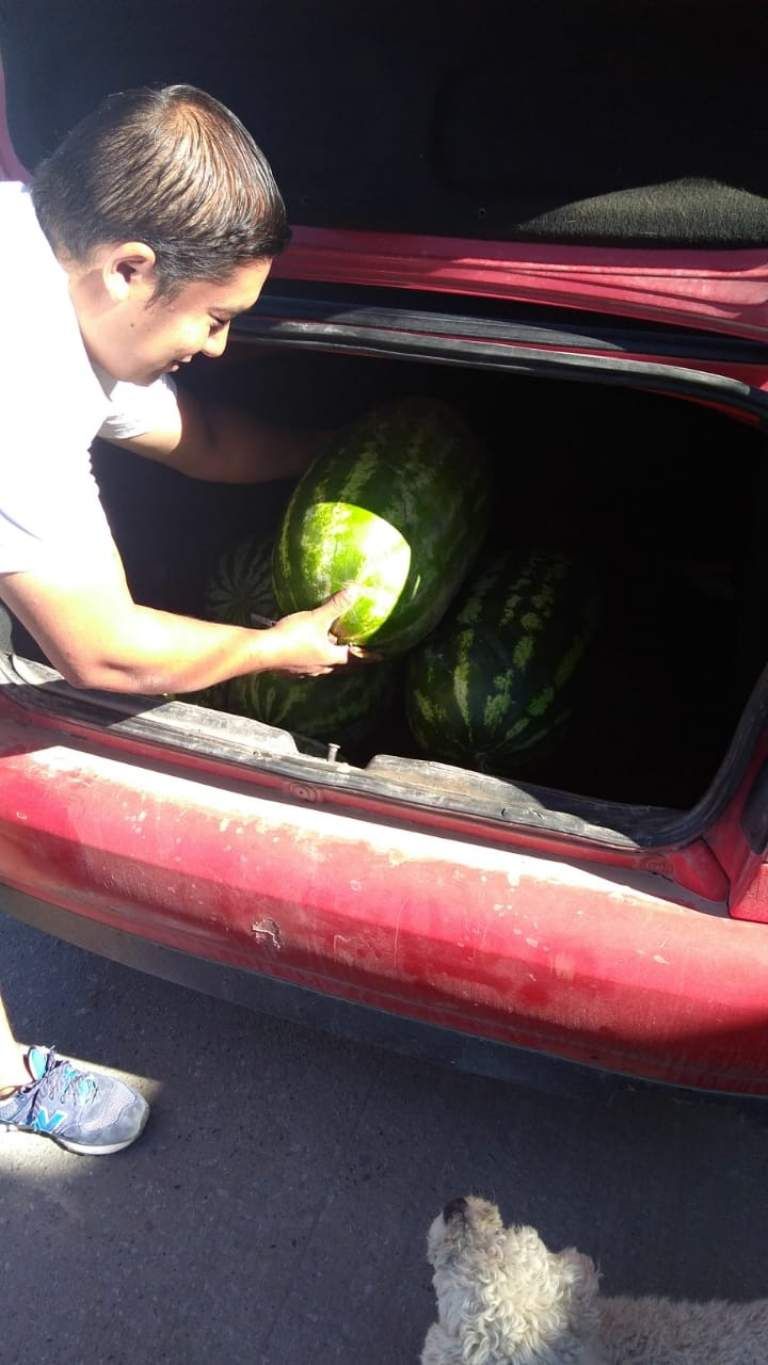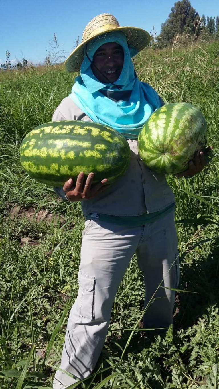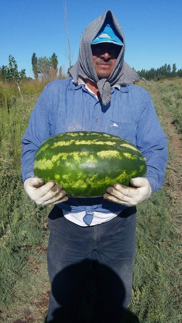 La fotos de las primeras sandías de la provincia son virales, la familia Pastran dio a conocer la noticia por radio Guía de Sarmiento y mostró las primeras sandías que fueron cosechadas en su chacra. Mirá las imágenes.