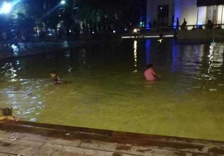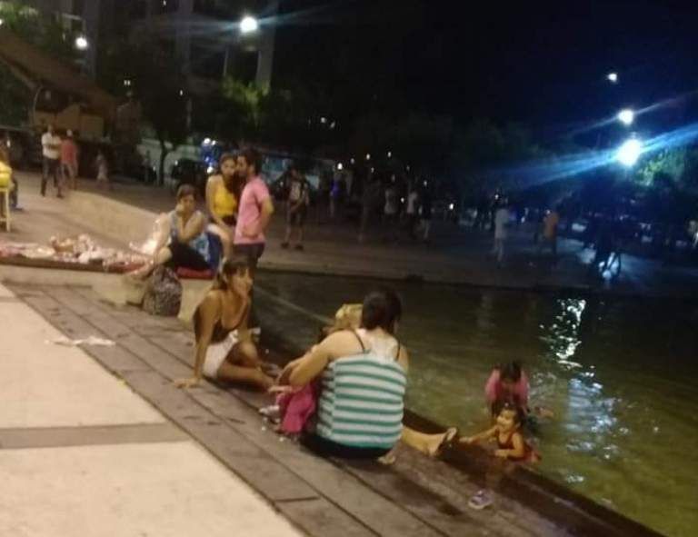 Este domingo 28 la Plaza del Bicentenario volvió a ubicarse en el centro de la polémica luego de que se compartieran imágenes de visitantes que decidieron refrescarse en la fuente para apalear el calor extremo. Mirá las fotos: