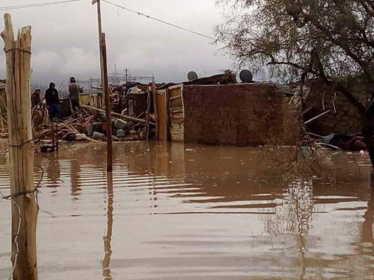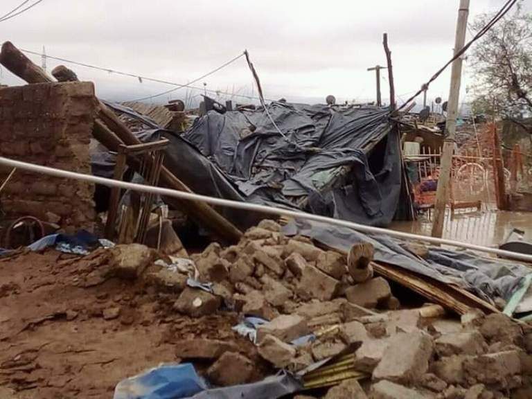Las dramáticas imágenes pertenecen al asentamiento La Paz, en Rivadavia, Así los dejó el terrible temporal de lluvia y granizo que azotó a toda la provincia durante la madrugada de este domingo.