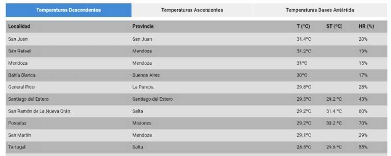 Tal como habíamos anunciado, se esperaba que el calor se instalara en San Juan durante la jornada del miércoles. Tal es así, que sobre las 19, el Servicio Meteorológico Nacional ubicó a nuestra provincia como la más calurosa del país en su ranking. A esa hora, el termómetro marcó 31.4º.