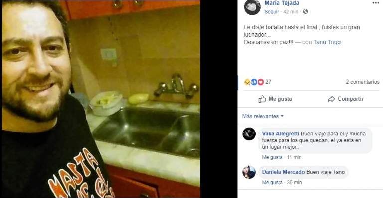 Como un luchador. Así lo recuerdan a Pablo “Tano” Trigo, un sanjuanino que hoy murió tras darle pelea al cáncer. Su historia se hizo conocida y conmovió a la provincia el año pasado, cuando se conoció la dramática situación familiar, ya que junto a su esposa Georgina Agüero le hacían frente al cáncer que padecía cada uno, en estado muy avanzado. Ella se fue en abril de 2018 y él hoy.