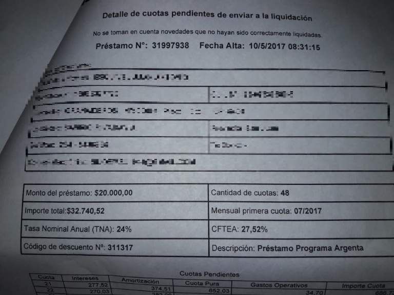 TIEMPO DE SAN JUAN accedió a un caso de un jubilado sanjuanino, quien solicitó tres préstamos personales durante estos últimos tres años. El primero, pidió $20.000 el 10 de mayo del 2017 con un TNA del 24% y CFTEA 27,52%. El segundo solicitó $32.800 el 8 de junio 2018 bajo una tasa anual del 29,29% y CFTEA 36,69%. El tercero, lo hizo el 23 de octubre del 2018 con un monto de $33.800, del 32% en tasas y el CFTEA al 40,13%.
