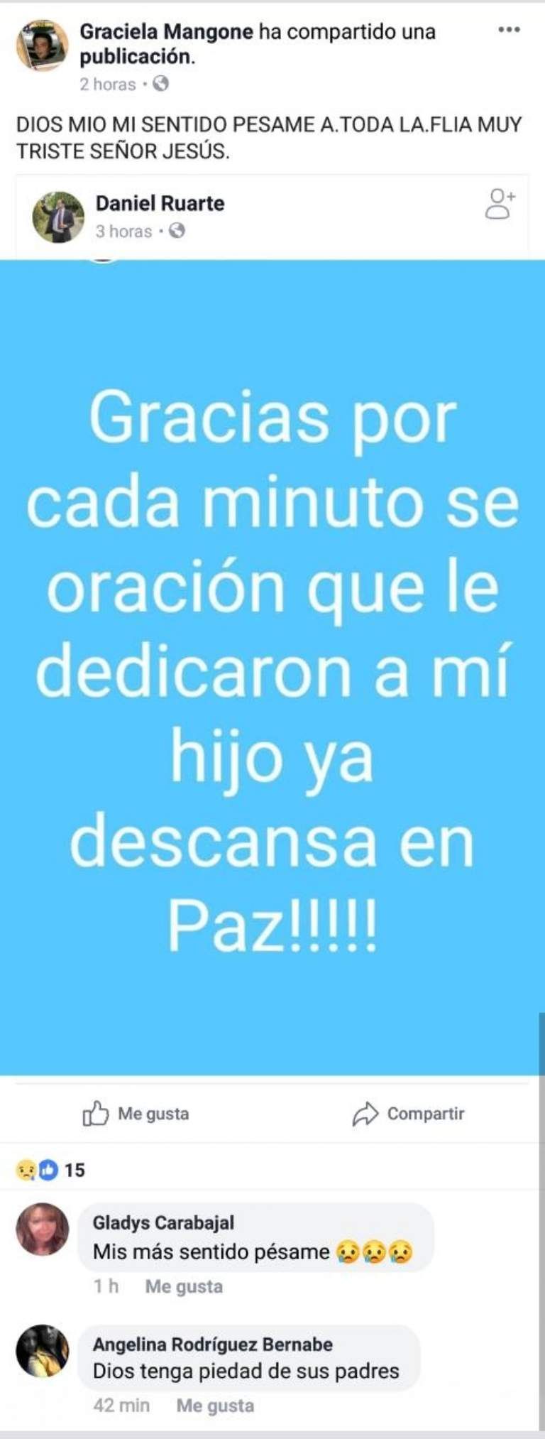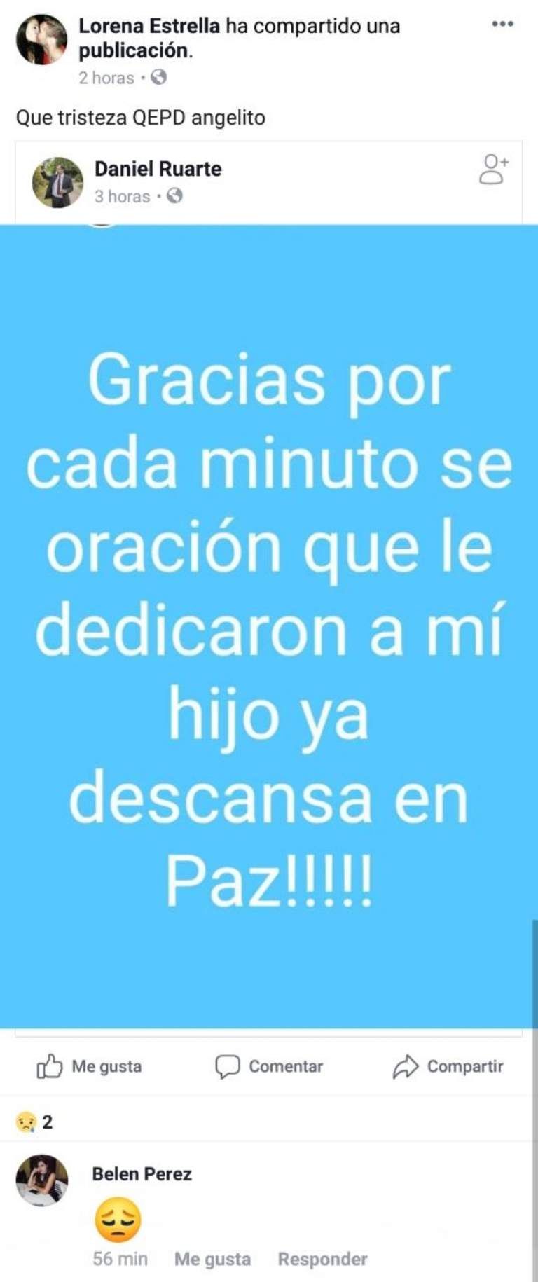 Luego de miles de sanjuaninos siguieran esperanzados con la recuperación de Gerónimo, el bebé de tan solo 8 meses lamentablemente falleció. Pero no pasó mucho tiempo antes de los sanjuaninos empezaran a solidarizarse con la familia del niño. Cientos de sanjuaninos le enviaron sus palabras de aliento por Facebook a Daniel Ruarte, el papá del niño tristemente fallecido. Mirá algunas de las palabras de ánimo: