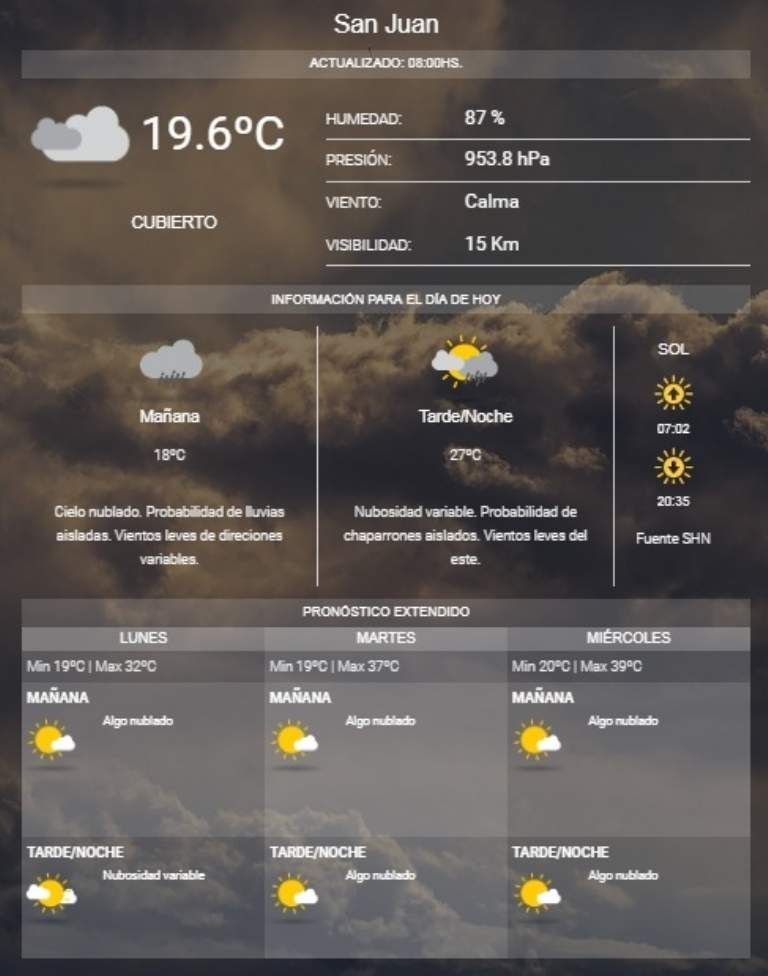 SUSCRIBITESegún el Sistema Metereològico Nacional la temperatura llegará a 25º centígrados. Con respecto a las lluvias, el SMN dice que las probabilidades serán bajas.