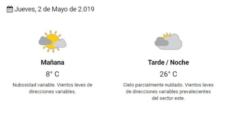 Este jueves, el tiempo será templado en San Juan con una temperatura mínima de 8º que alcanzará los 26º, según informa el Servicio Meteorológico Nacional, que también indica que habría la presencia de nubosidad variable y vientos leves de direcciones variables para la mañana.