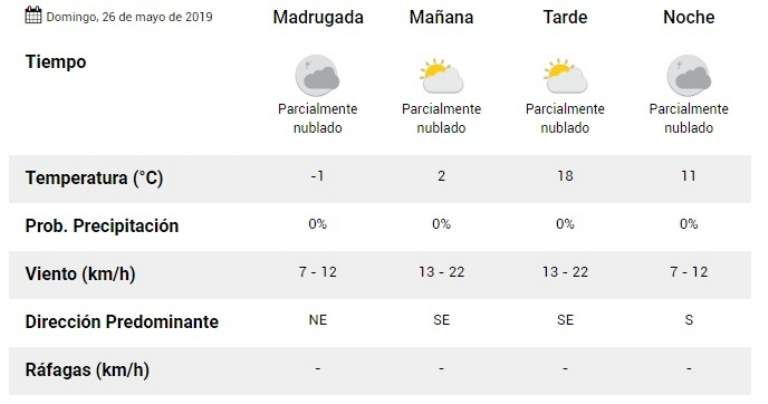 Luego de una jornada de locro, pastelitos y chocolate caliente, se espera que el domingo la temperatura sea menor. Si bien se espera que la nubosidad sea menor que la del sábado, el flujo del norte cambiará hacia una brisa desde el sur lo que hará que baje la temperatura en San Juan.