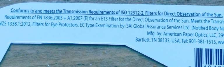 Los anteojos que se pueden usar son únicamente aquellos que acreditan cumplir con las normas ISO 12312-2. No sirven anteojos de sol comunes, placas radiográficas, botellas de color, vidrios polarizados u otros objetos. La única opción "casera" que es segura son las máscaras de soldar.