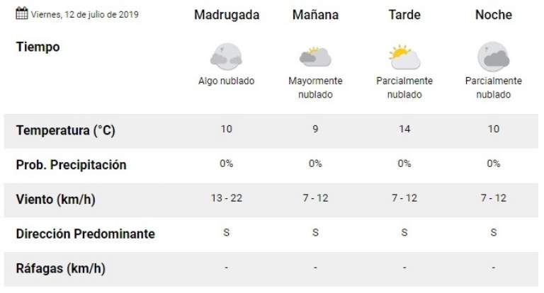 Luego de una semana bastante fría en San Juan, parecería que el viernes dará un respiro al menos en cuanto a la amplitud térmica. Es que de cumplirse con lo pronosticado por el Servicio Meteorológico Nacional, el cielo estará tan nublado que servirá para que la temperatura mínima no sea tan baja y que la máxima no sea tan alta.