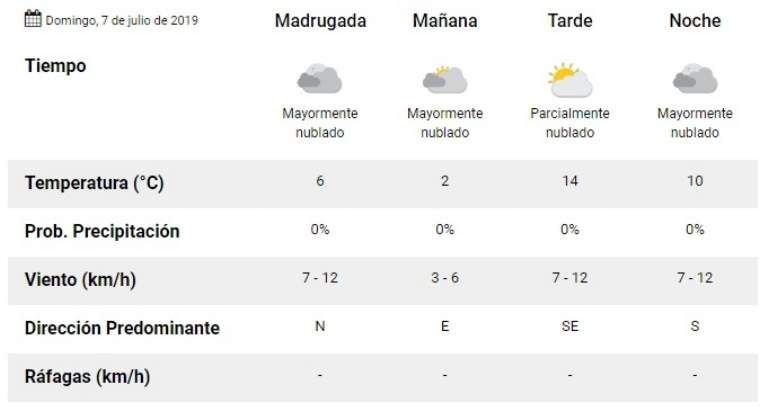 Con el cielo nublado y vientos de direcciones variables, el clima en San Juan será frío este domingo según Informó el Servicio Meteorológico Nacional. Una mínima de 2 grados se presenta en el pronóstico extendido mientras que la máxima será de 14.