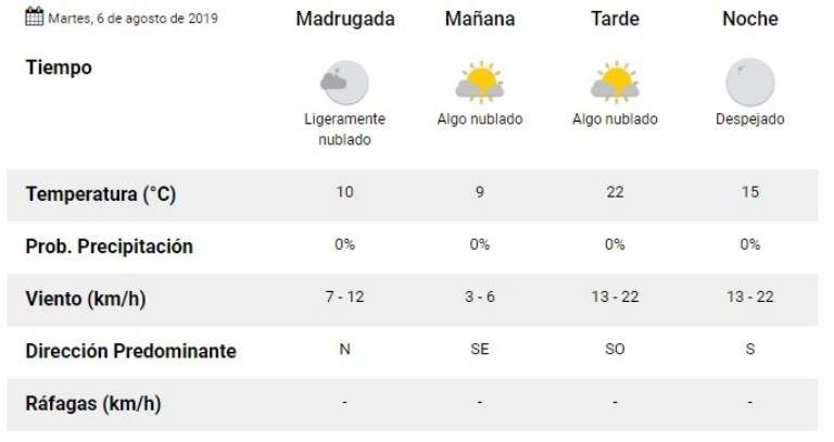 Ya estamos muy acostumbrados los sanjuaninos al viento, así que tampoco nos cambia la vida. Lo cierto es que para este martes se espera una madrugada con viento norte que hará que la temperatura no disminuya. Durante el día estará "algo revuelto" como se dice, para que a la noche rote totalmente y sople desde el sur. En horas de la noche se sentirán las ráfagas más fuertes, que irán desde los 13 hasta lo 22 kilómetros por hora.
