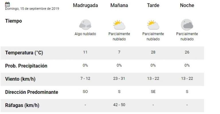 Según el Servicio Meteorológico Nacional, el domingo será un día en el que la temperatura variará notablemente entre la mañana y la tarde. Pronostica una mínima de 7 grados para la mañana; mientras que en la tarde estima que tendremos una temperatura de 28 grados.