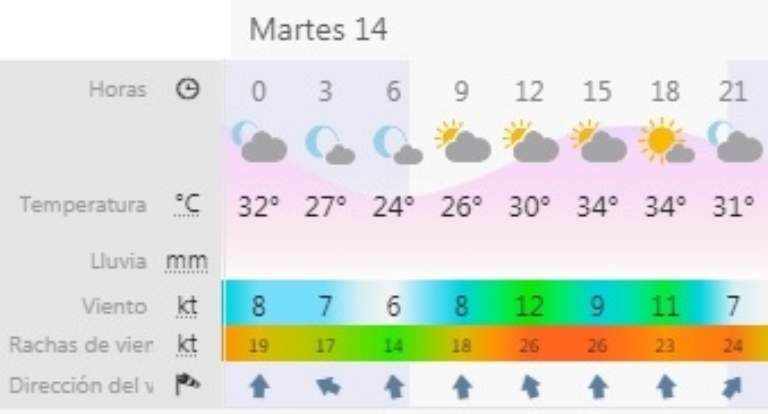 El pronóstico anunció desarrollo de tormentas aisladas desde la noche del lunes que se extenderían hasta la mañana del martes. Desde el mediodía, las condiciones mejorarían temporalmente, con un ambiente cálido y una máxima que rondaría los 38º.