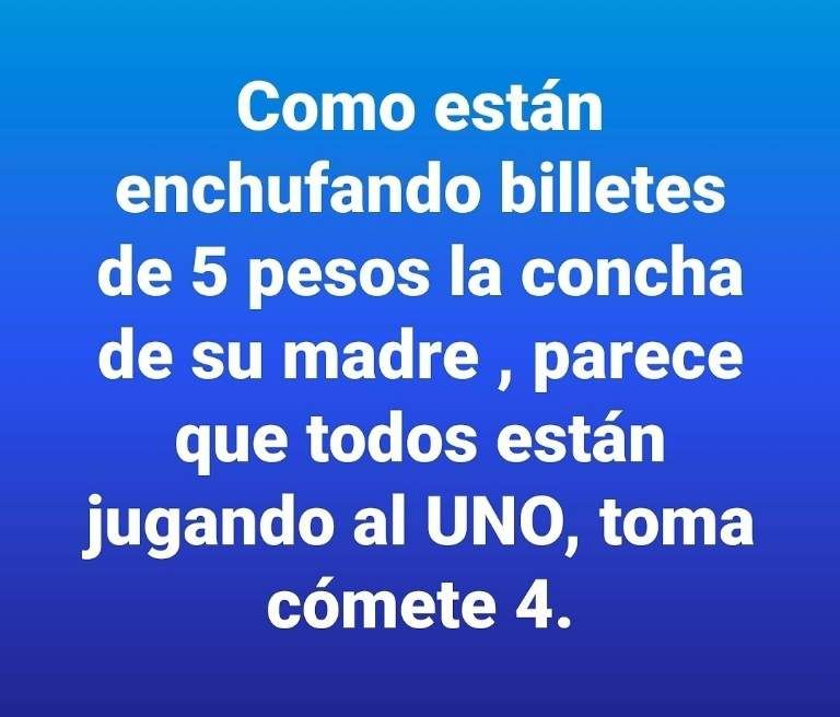 Tal como dice el meme que circula en internet, ir a comprar parece una partida del popular juego UNO, donde cada participante tiene un sólo objetivo: llenar al contrincante de cartas. Sólo que en lugar de naipes, lo que va y viene son billetes de la denominación más baja.