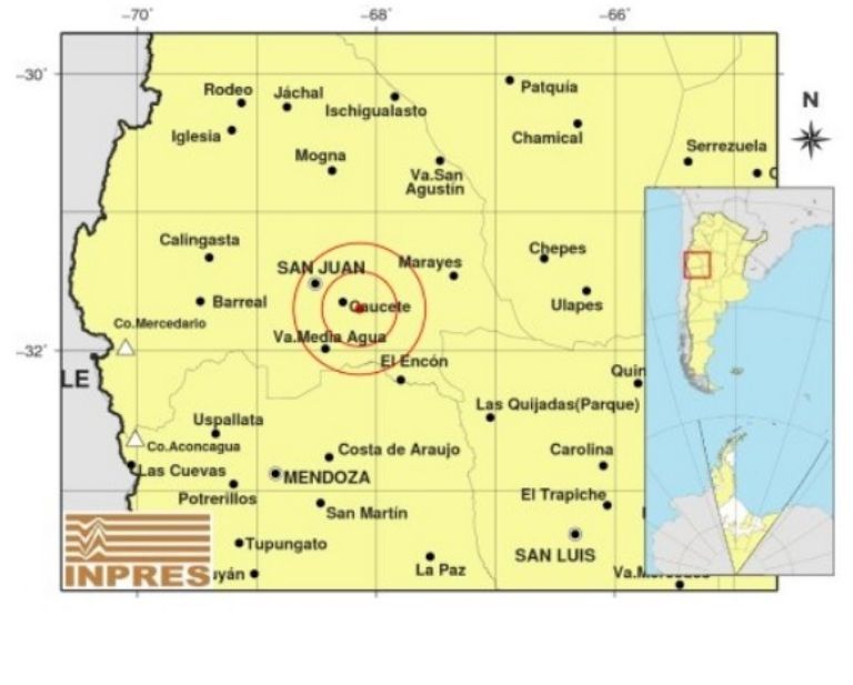 El epicentro fue en Caucete, a 41 km al sudeste de Capital, según el INPRES. Además, informaron rápidamente que la profundidad del movimiento fue de 118 kilómetros.