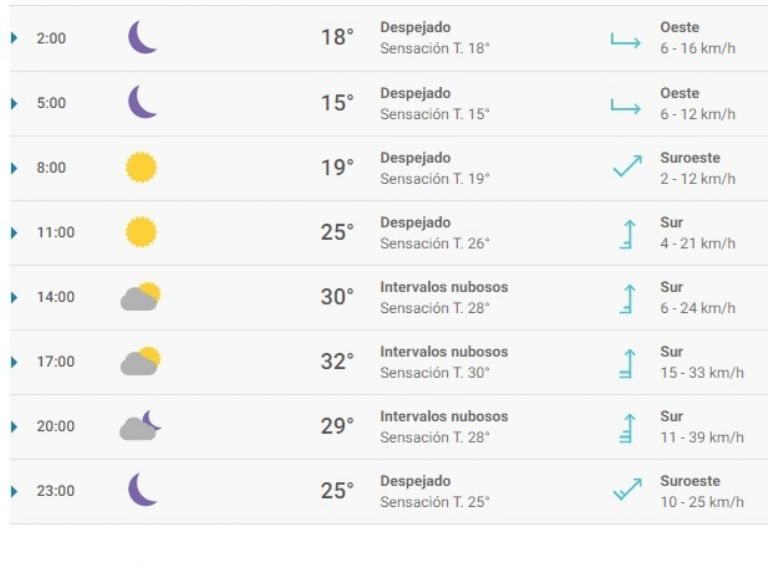 A lo largo de la jornada prevalecerá el viento moderado de sur, con rachas que podrán llegar hasta 39 km/h por la noche.