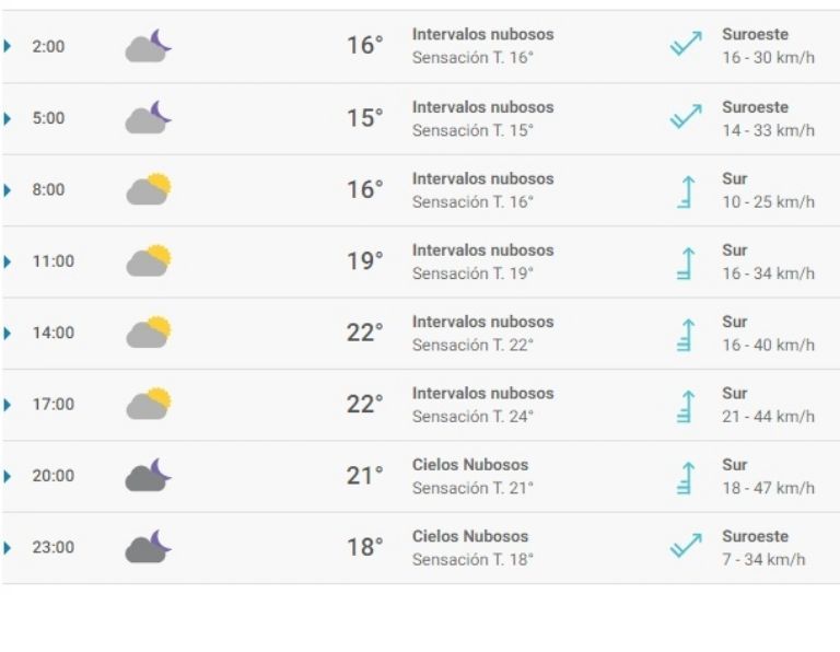 A lo largo de la jornada prevalecerá el viento moderado de sur, con rachas que podrán llegar hasta 47 km/h por la noche.
