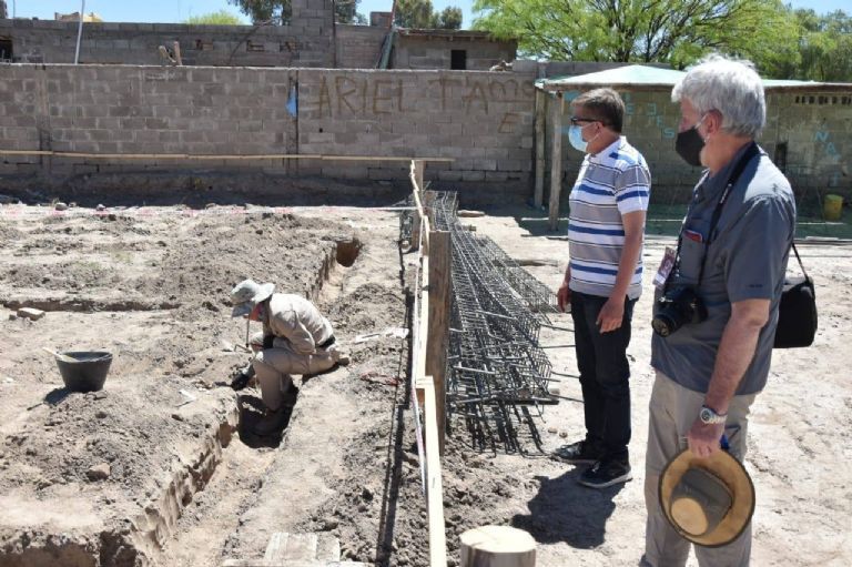 El intendente de Jáchal, Miguel Vega acompañó al Director de Patrimonio Cultural de San Juan, Jorge Martín, en su visita al departamento en el marco del reciente hallazgo de restos óseos en el interior de una obra de construcción en el Centro de Jáchal.