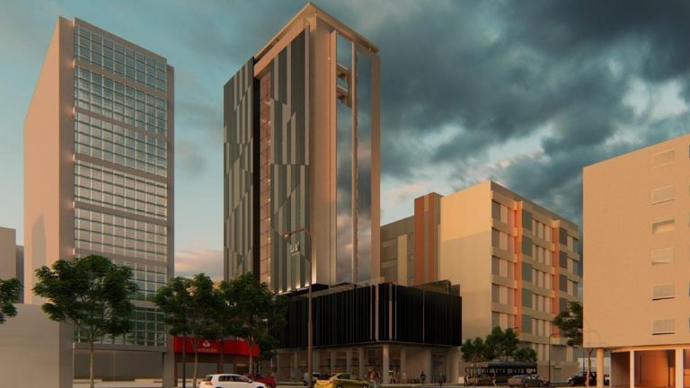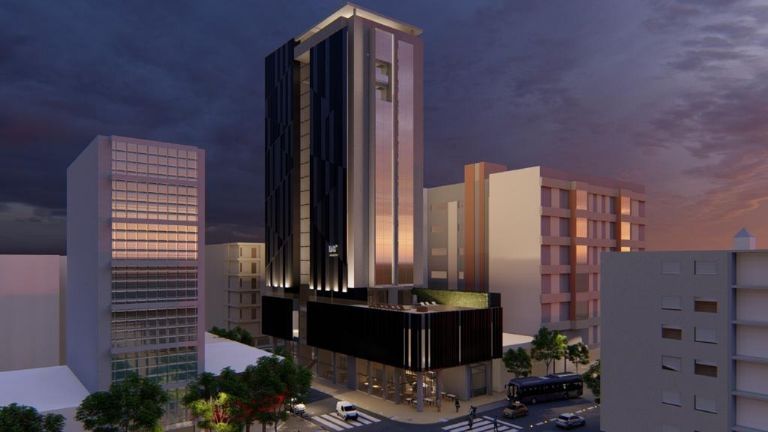 De estética vanguardista, vidriado, con grandes visuales, así se proyecta el edificio del nuevo hotel 5 estrellas con spa que ya está en construcción en pleno centro sanjuanino.