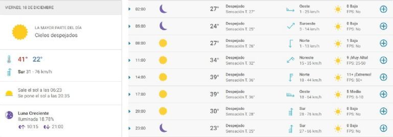 El tiempo de San Juan es impredecible. Este jueves, justo cuando la provincia era la más caliente del país, una lluvia sorprendió a los sanjuaninos y trajo más humedad que alivio. Sin embargo, todo indica que no habrá variantes en el pronóstico del viernes, al menos en lo relativo a temperatura. Será otra jornada infernal.