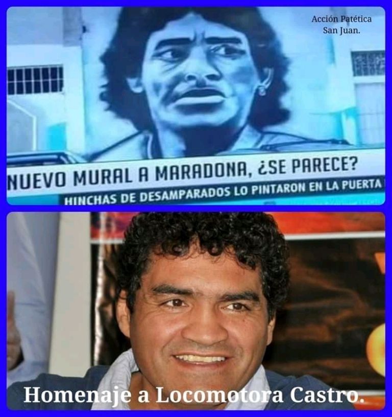 Ahora, Desamparados rindió tributo al astro y corrió la misma mala suerte. Los más ingeniosos compararon el rostro con el del artista popular sanjuanino “El Grillo” Malbrán. Otros se animaron a un paralelismo con el actor Sebastián Estevanez. Según imágenes que se viralizaron en las redes, la hipótesis más fuerte es que eliminaron el mural para armar uno nuevo. Otros, optimistas, dicen que aún no se terminan las pinceladas.