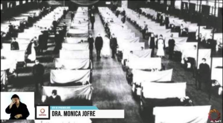 En este marco, la médica mostró como ejemplo la situación dada en 1918 con la gripe española, mostrando una tapa de la revista Caras y Caretas de la época. "Hay bibliografía que dice que murieron 50 millones de personas, otras dicen 100 millones de personas entre 1918 y 1920. Ya desde ese omento se mostró que las medidas son efectivas. por eso insistir. Si hace tantos años hubo una pandemia que dejó tantos fallecidos y también se adoptaron estas medidas, esto es medicina basada en la evidencia", resaltó. "Nosotros recalcamos el distanciamiento social que aunque tengamos tapabocas igual debe respetarse", dijo. Y agregó que "no olvidemos de las otras medidas, alcohol en gel, lavarse las manos, limpieza en la casa, entre otras", explicó.