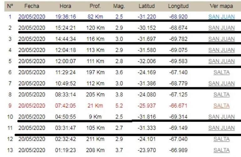 Como el miércoles anterior, en San Juan se vivió una jornada con seguidilla de temblores en menos de 24 horas. Según los datos que brindó el Instituto Nacional de Prevención Sísmica (INPRES), en el país se registraron 13 movimientos telúricos y 13 tuvieron como epicentro a la provincia cuyana.